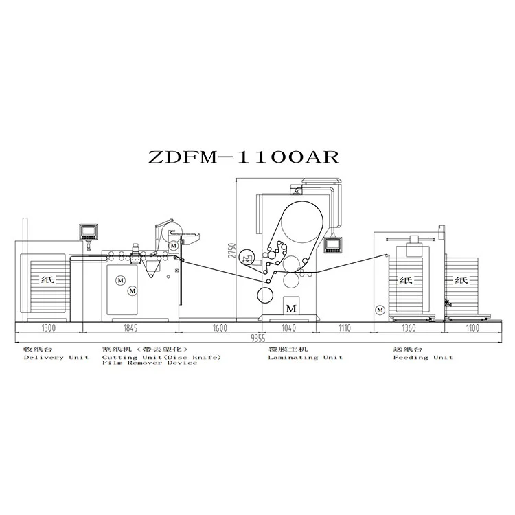 स्थान योजना: स्वचालित फिल्म रिमूवर लैमिनेटिंग मशीन की कुल लंबाई लगभग 9.4 मीटर है, और रिलीज फिल्म रीसाइक्लिंग रोल के लिए अतिरिक्त भंडारण और प्रतिस्थापन स्थान आरक्षित किया जाएगा। घुमावदार पक्ष पर कम से कम 2 मीटर ऑपरेटिंग चैनल आरक्षित करने की अनुशंसा की जाती है।